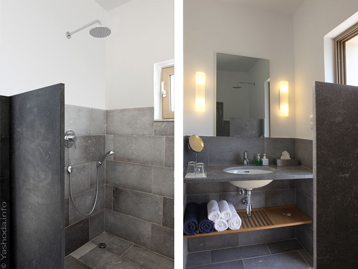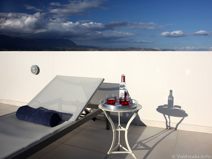 Each room has its own garden patio in the olive grove, a roof deck offering glorious views, a spacious bathroom with separate WC, and showers both inside and outside as well as air conditioning, internet access and a fridge. A television is available on request.